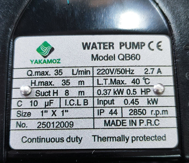 پمپ آب نیم اسب یاکاموز تمام مس مدل QB60